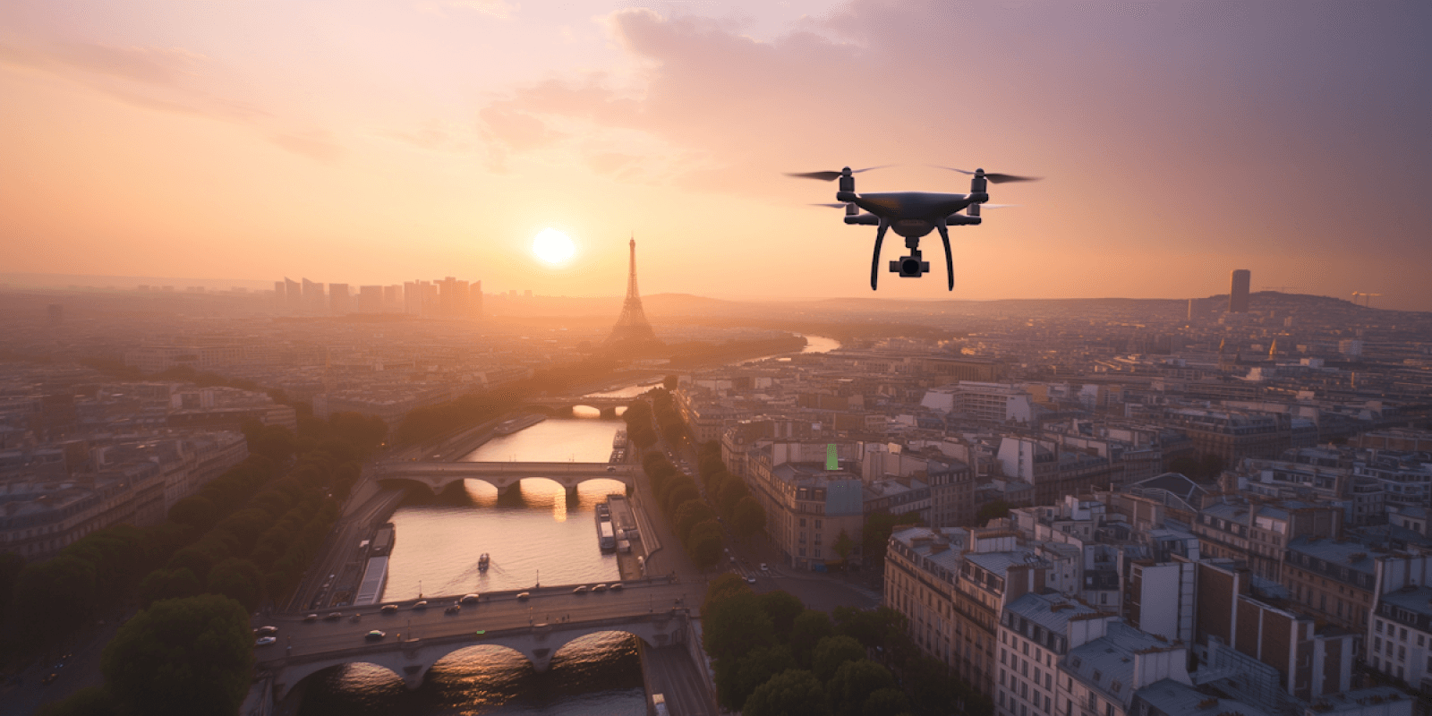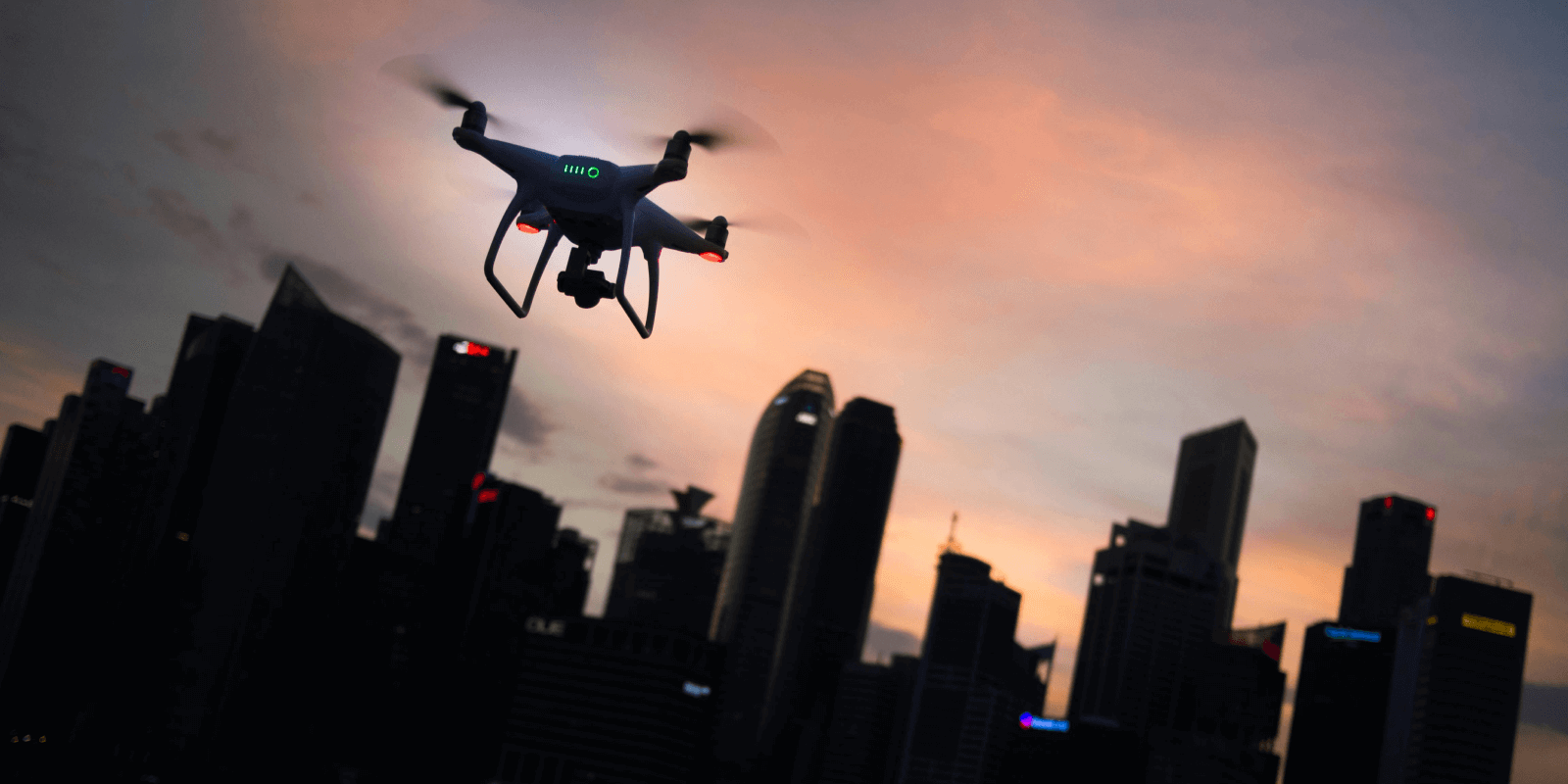 Wide aerial shots were captured to provide establishing visuals of the urban environment.